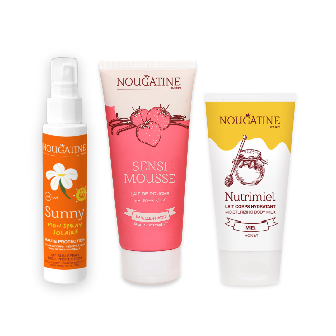 Un trio essentiel pour prendre soin de votre peau au soleil : une routine complète, aux formules d’origine naturelle, pour protéger, nettoyer et nourrir en douceur.